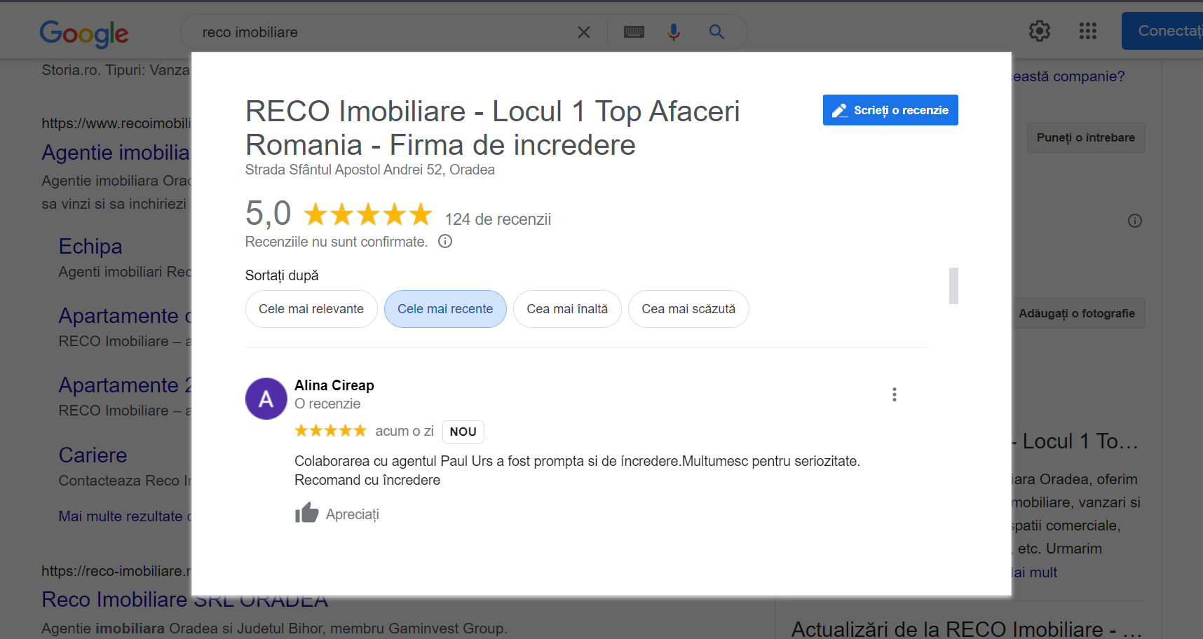 La RECO Imobiliare ma simt ca pestele în apă, am exact jobul pe care mi-l doresc, fără limita de câștig și fără frustrarea ca nu-mi sunt recunoscute meritele chiar dacă ma dedic trup și suflet.